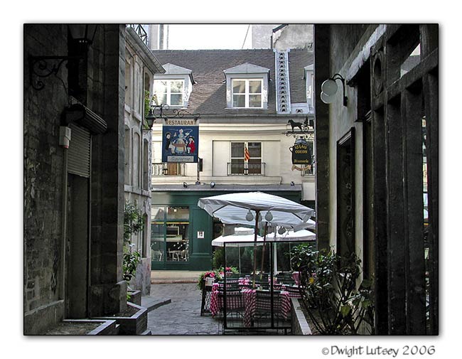 France 019 - Alley way looking out at courtyard cafe