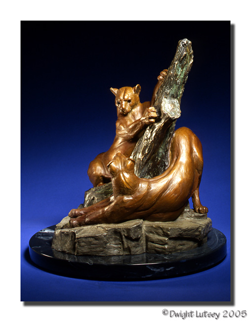 Sculpture 010 - The Courtship - mountain lions - bronze marble